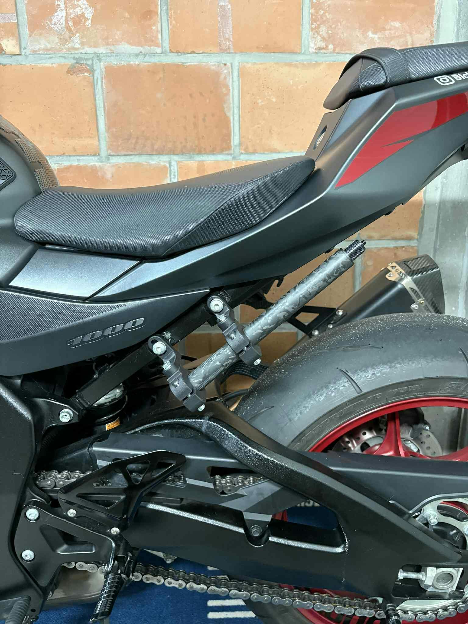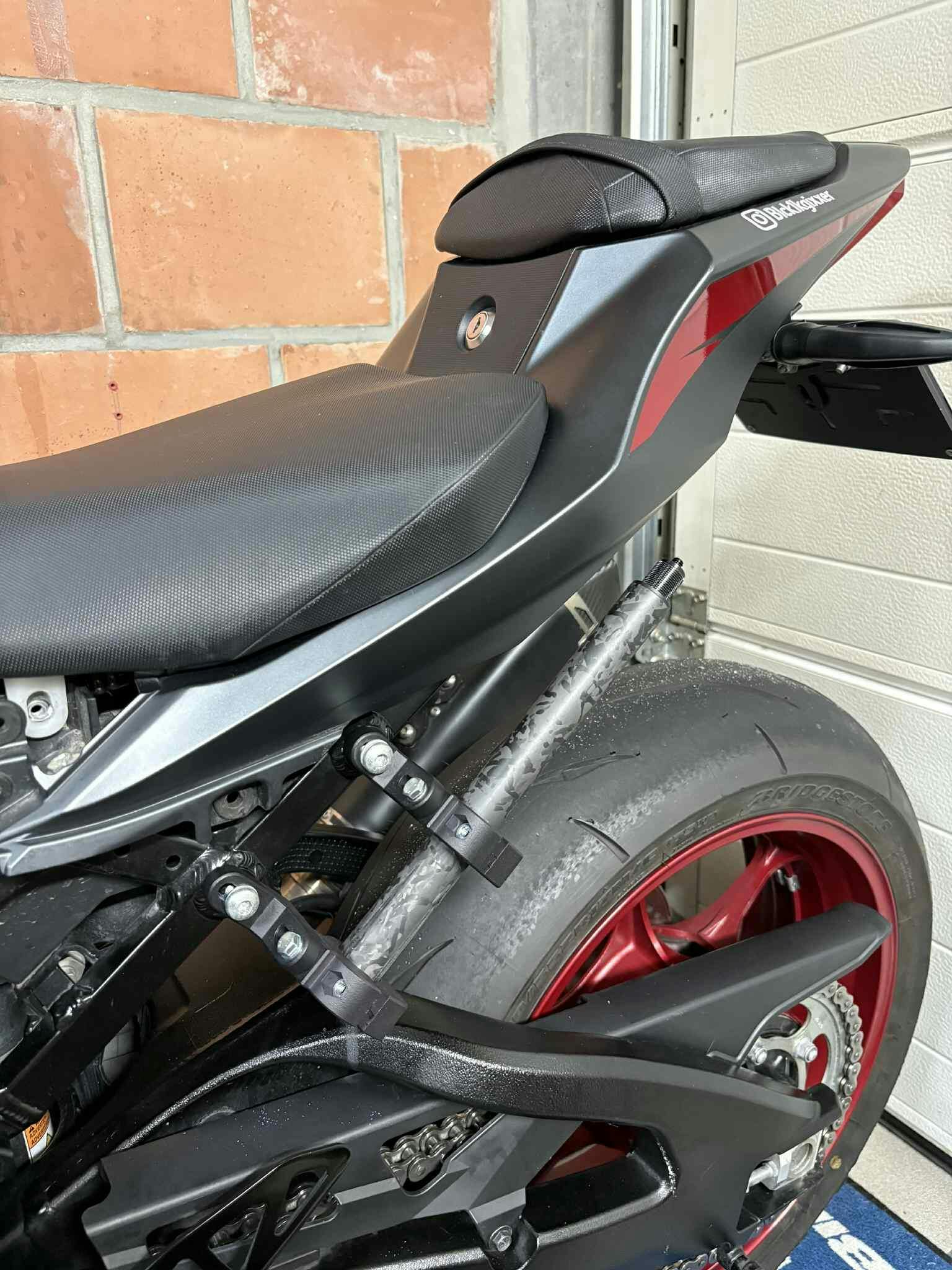 Mit dieser speziell entwickelten Halterung kannst du deinen Selfie Stick sicher und stabil am Motorrad befestigen. Sie wird an den vorhandenen Gewindepunkten montiert, an denen normalerweise die Soziusfußrasten sitzen.